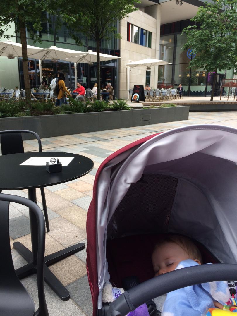 When waiting for my other half to get into Victoria Station I came upon Nova Victoria – this is a really nice ‘row’ of restaurants on a pedestrianised street with lots of outdoor seating and tons of restaurants. I was drawn to Ole & Steen, a Danish bakery that had amazing looking cakes in the window. After major pondering, I chose a (huge) piece of their ‘social slice’ a chunk of cinnamon-y goodness which was a-may-zing!! There were lots of seats outside with plenty of space to put the pram, and while Little A was snoozing, a perfect spot to people watch. Plus the major bonus of it being non-smoking outside!