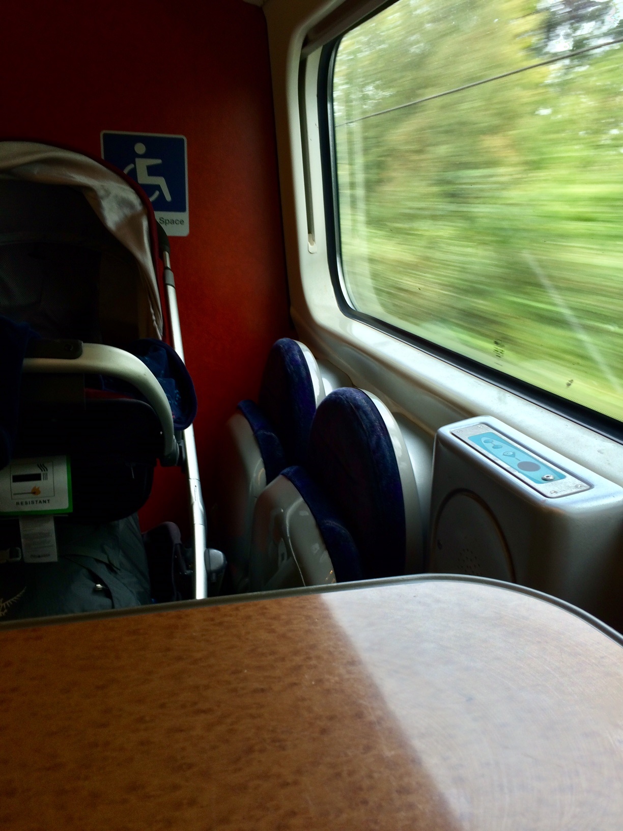 One of the big advantages of travelling by train is that you can move around if you need to. When Little A gets restless, a little walk to the vestibule and a look out of the windows is a good distraction for a while. There’s usually plenty of space on board to have a wee wander where you’re not getting in anybody’s way. The little seats outside the toilets are a godsend when the baby just needs a distraction. Pick the carriage near the buffet car and you have an endless supply of people passing by for the baby to smile at and chatter to.
