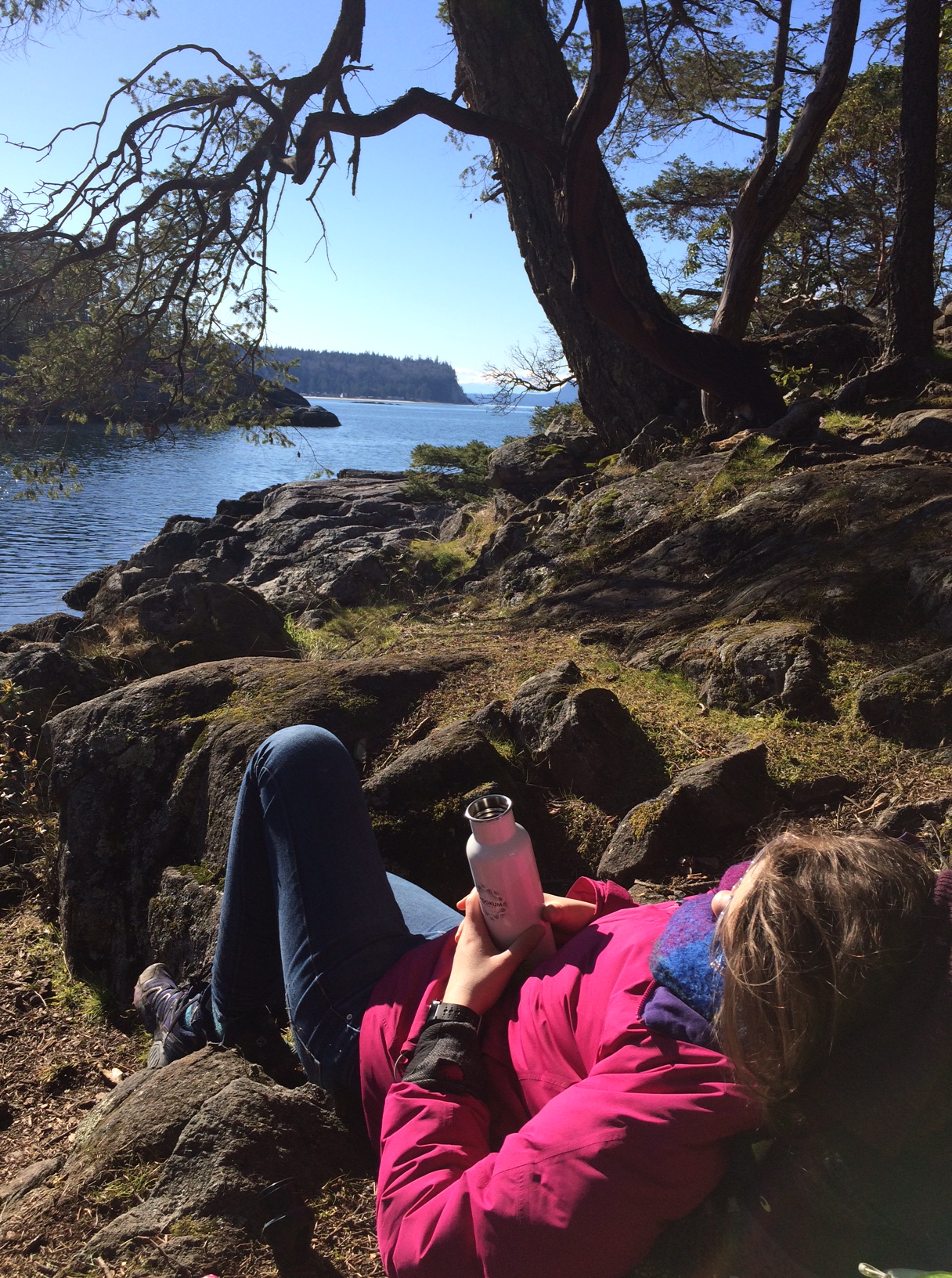 After a while you climb a little bit and come out at the area known as smugglers cove. It’s completely hidden from the water so it was used to smuggle workers from here to the USA. The water was stunning – all turquoise, blue and green. We found a way to climb down to sit on what would be a little island at high tide to have lunch. It was so beautiful! The trail does a big loop so we worked our way round and literally upon every turn we were met with a stunning view. It was quite hard to keep going because we just wanted to sit and watch the world go by. It helped that the weather was incredible so there were little boats out and the odd float plane.