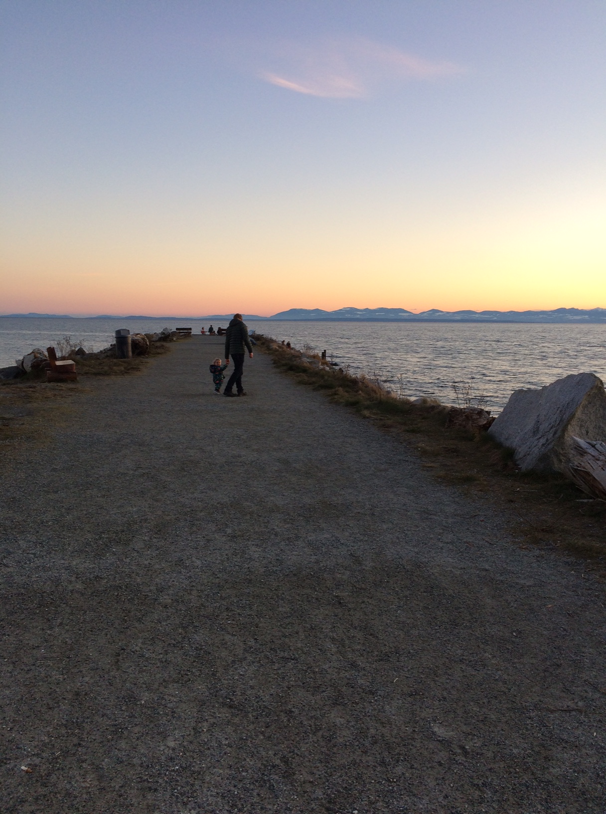 Our home for the night was Up The Creek backpacker hostel in Roberts Creek. It was so lovely and homely. From the warm welcome from Martin, the owner, to the roaring fire inside, it looked truly Canadian. With sunset fast approaching we hotfooted it down to the water and the pier just in time to catch the sun dipping behind Vancouver Island. It made the running to get there in time worthwhile. The colours were so striking. Seeing Little A enjoying a stroll with his uncle made my heart melt. Such a great memory!